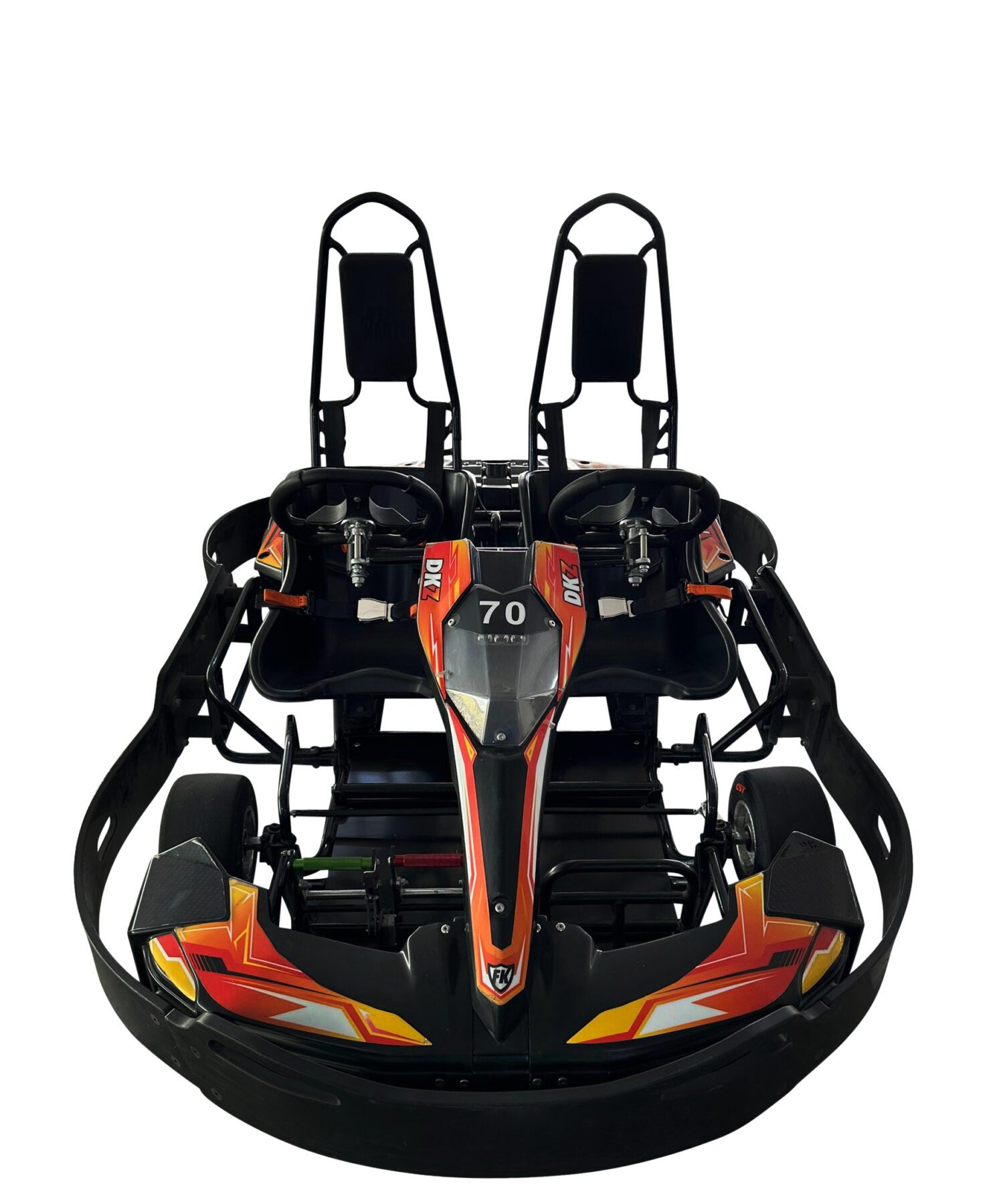 Engineered for versatility, the DKZ features two functional steering wheels and adjustable flip-style pedals that can be positioned on either side. Spacious seating accommodates one adult and one child—or two adults—making it ideal for commercial track fleets.