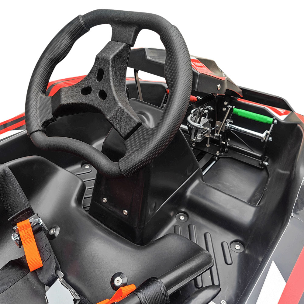 Equipada com um motor Honda de 160 cc, com opção de upgrade para 200 cc, a TK1 oferece desempenho suave e previsível em um pacote compacto. Seus pedais ajustáveis estilo flip e assento ajustável proporcionam um ajuste personalizado para motoristas menores, permitindo flexibilidade à medida que crescem.